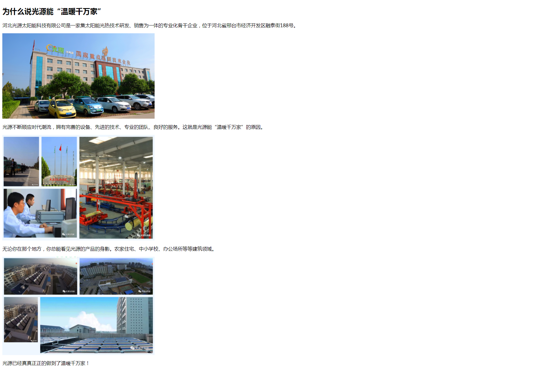 Copyright(C)2021 河北光源太陽能 E-mail: hbguangyuan@163.com 地址: 邢臺(tái)經(jīng)濟(jì)開發(fā)區(qū)王快鎮(zhèn)北屋村永安路2199號 關(guān)于光源 | 公司動(dòng)態(tài) | 聯(lián)系我們 | 法律聲明